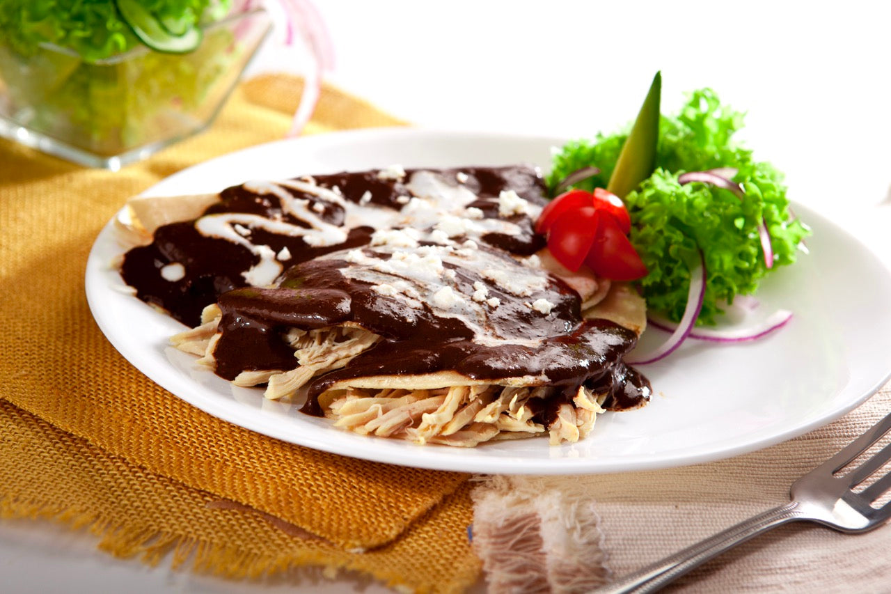 Receta de enchiladas con pollo deshebrado con sus ingredientes e instrucciones